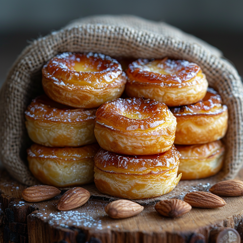 Almond Pastéis de Nata bring a crunchy texture and a sweet, slightly toasted flavor to this classic dessert. Ground or flaked almonds enrich the custard with a delightful nutty note.