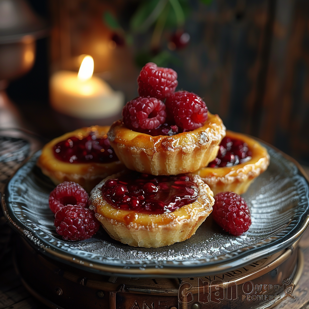 Raspberry Pastéis de Nata bring a fruity and tangy twist to the classic Portuguese dessert. The raspberries add a refreshing touch and a vibrant color that beautifully contrasts with the creamy sweetness of the traditional custard.