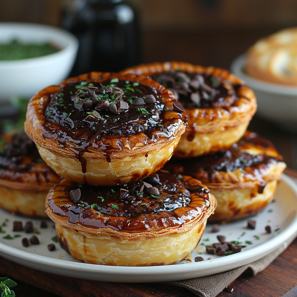 Chocolate Pastéis de Nata are a gourmet and decadent twist on the traditional Portuguese custard tarts. By adding chocolate, this version gains an extra layer of richness and intensity, perfect for chocolate lovers.