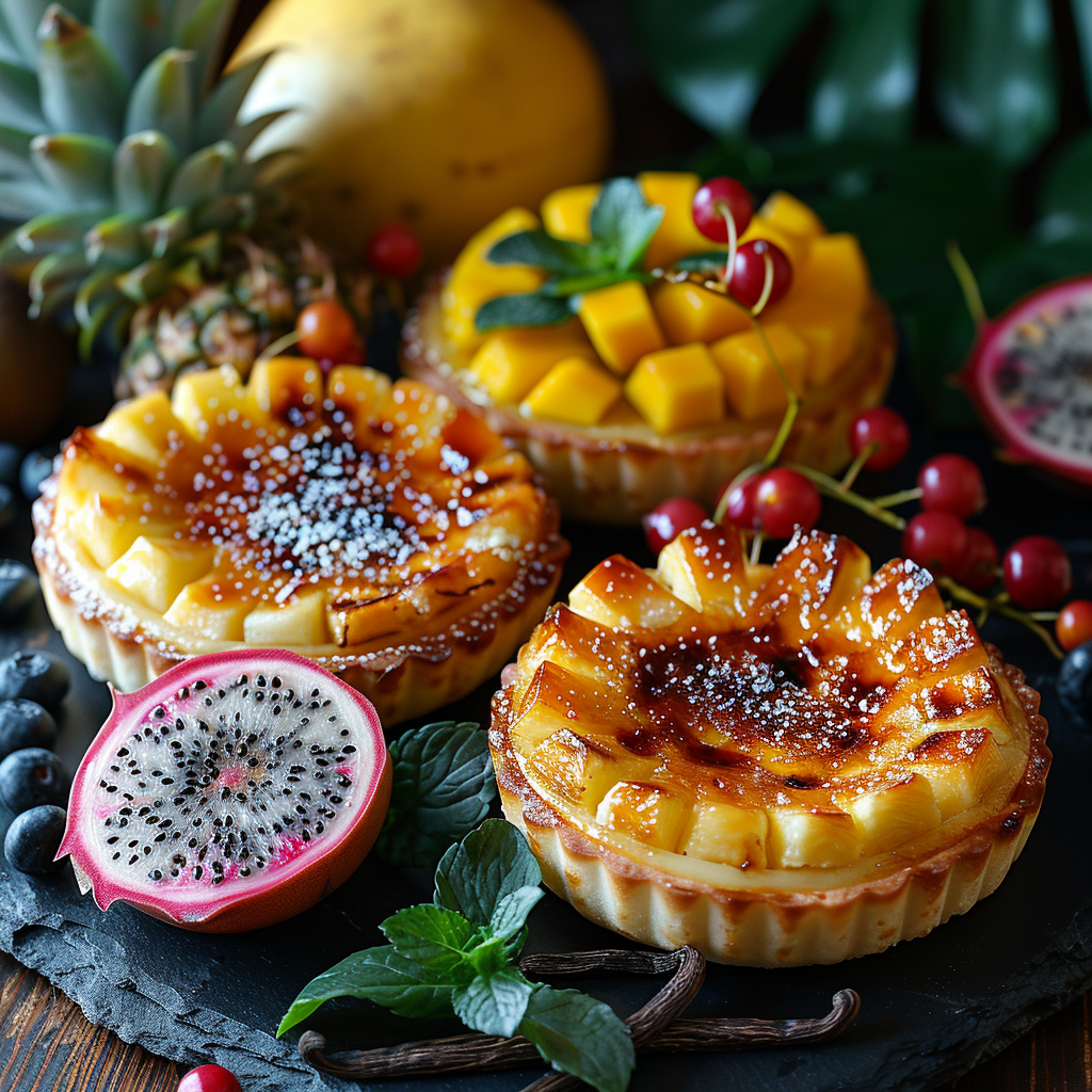 Exotic Fruit Pastéis de Nata bring a refreshing and colorful twist to this classic dessert. Using fruits like mango, pineapple, and passion fruit, this version is perfect for lovers of tropical flavors.